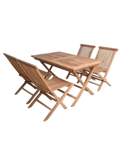 To Set αποτελείται απο 4 πτυσσόμενες καρέκλες απο ξυλεία Teak υψηλής ποιότητας και ένα πτυσσόμενο τραπεζάκι επίσης ξυλείας Teak σε διαστάσεις 70cmΧ120cm